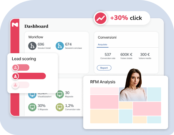 Dashboard, report, insight, RFM Analysis e lead scoring ti aiutano a capire meglio chi hai davanti, quali segmenti si muovono di più e dove conviene intervenire. Perché avere tanti dati serve fino a un certo punto, se poi non sai come usarli.